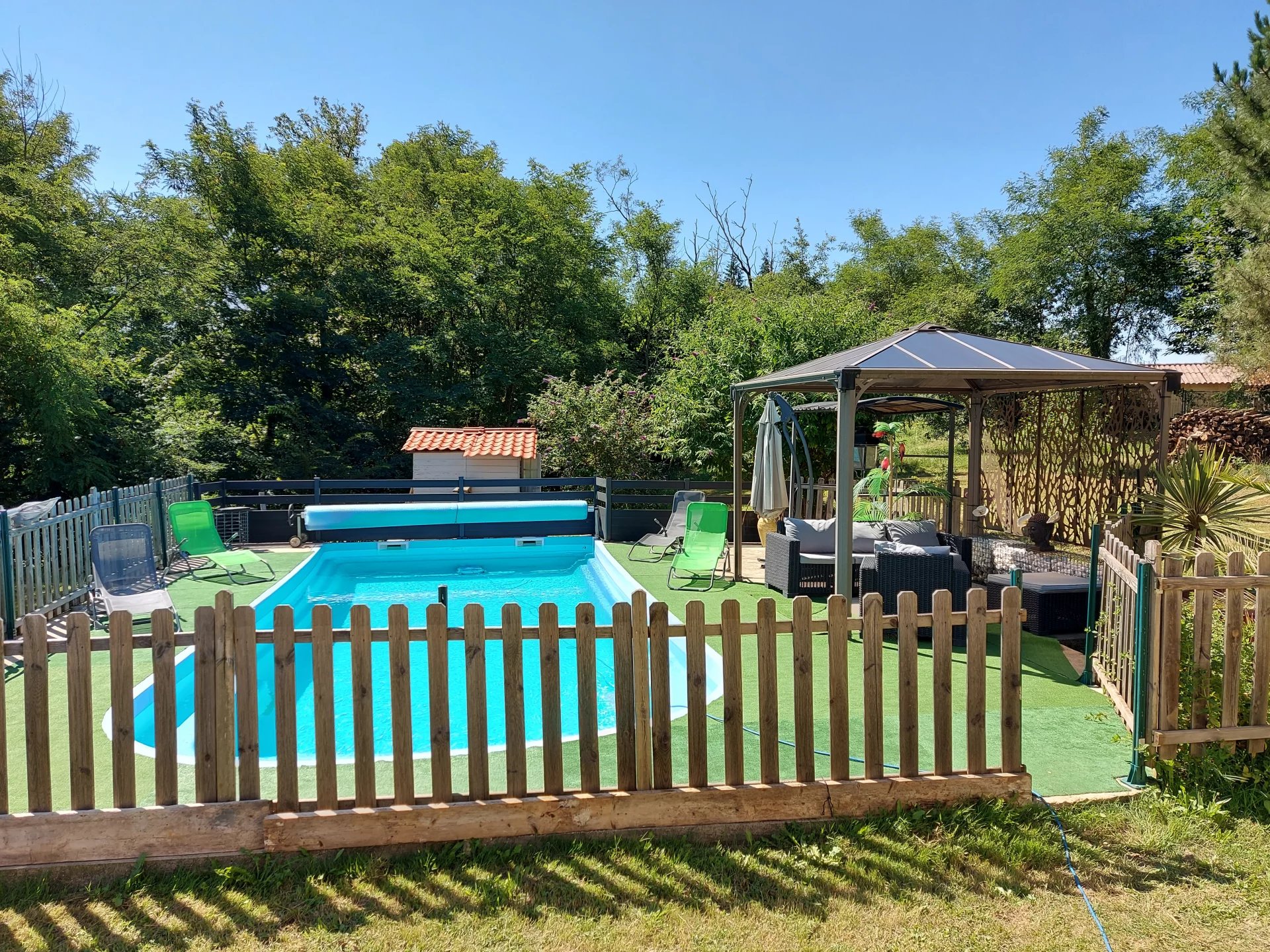 Le grand terrain arboré de plus de 6500 m² accueille une piscine 9x4m sécurisée avec son coin détente sous pergola. Emplacement tranquille à 5 minutes d’un village dynamique de la Bouriane avec tous commerces.